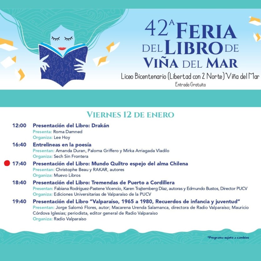 Imagen anteriorPróxima imagen WhatsApp Image 2024-01-06 at 13.59.39 2 Programa 42ª Feria del Libro de Viña. del Mar Comparte esto:CompartirTweet Email a link to a friend (Se abre en una ventana nueva) Correo electrónico Me gusta Cargando...